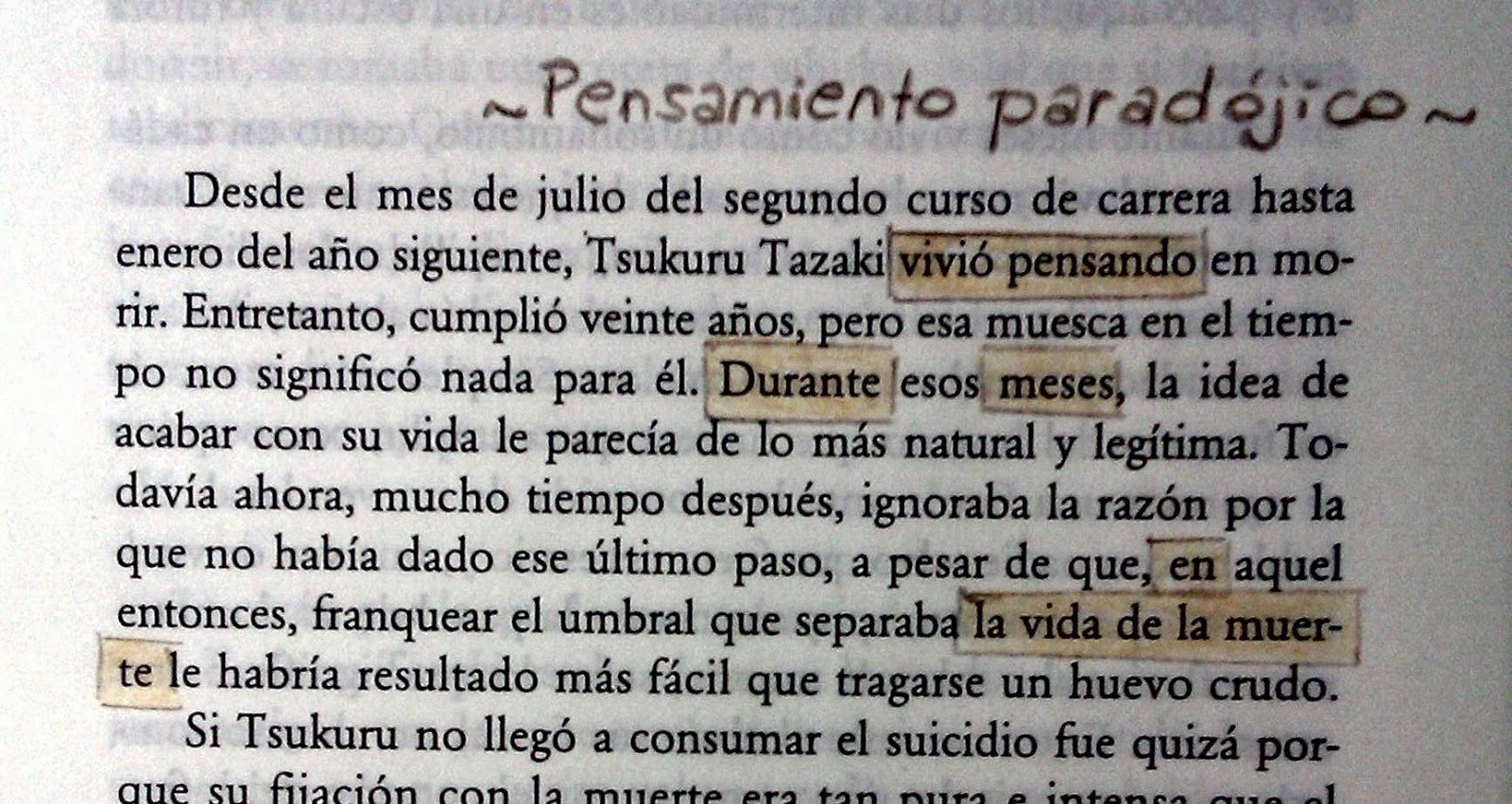 Pensamiento paradójico por Belen Lorenzo Texto extraído del comienzo de Los años de peregrinación del chico sin color, de Haruki Murakami (traducción de Gabriel Álvarez Martínez). 12 palabras Belen LorenzoEscritora. belenlorenzo.com/